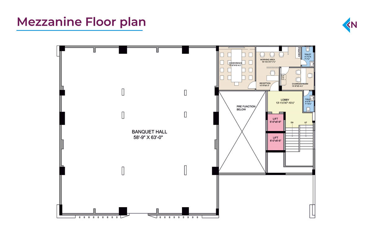 A grand, interior-designed banquet hall with a capacity of approximately 300 people, ideal for large gatherings, traditional performances, weddings, and major community events.