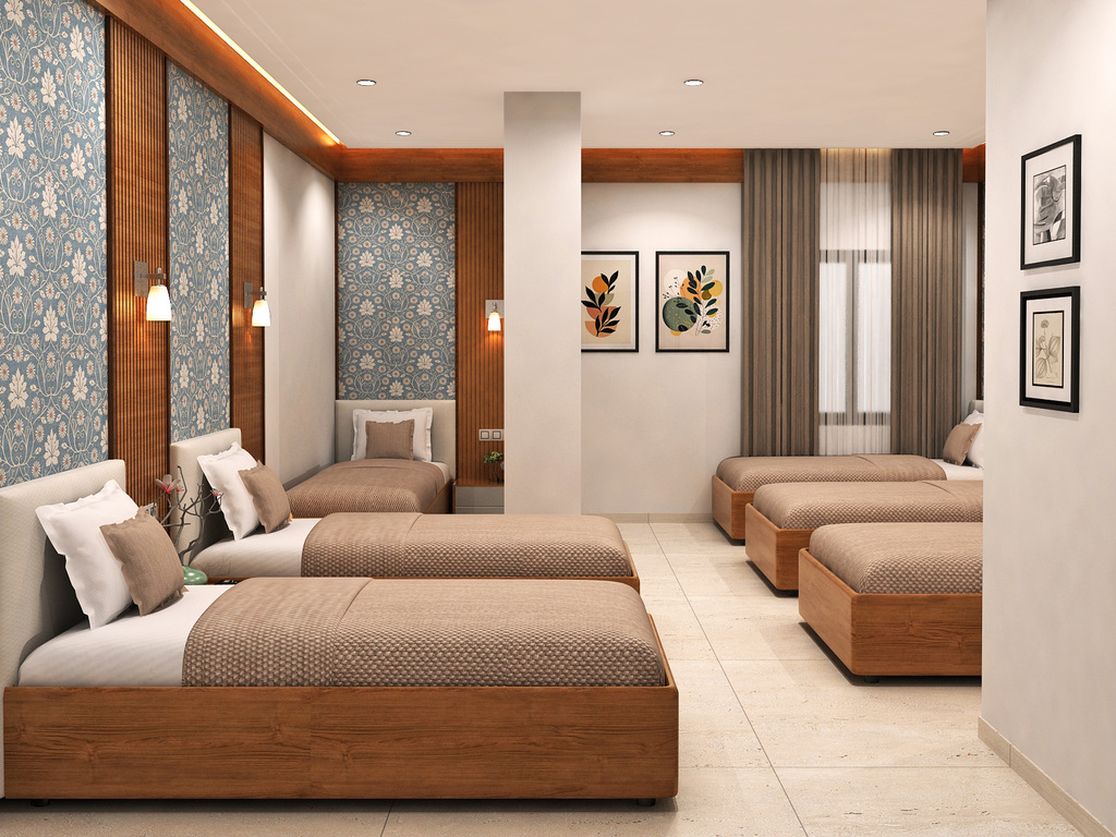 Well-appointed double bedrooms with attached toilets and state-of-the-art facilities, providing comfortable stay options for guests.